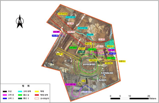 이 조사들을 통해 백제~조선시대 성벽, 수구지, 집수지, 건물지 등을 확인한 바 있다.