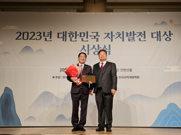 이 의장은 대민 의정 강화를 위한 노력과 함께 취약계층에 대한 지속적인 지원을 위한 관련 조례 제정, 관내 향토문화 보존과 독립유공자 처우개선을 위한 제도마련, 지방인소구멸위기 극복을 위한 선제적 대응과 지역발전을 위한 중앙정부에 대한 건의 등 활발한 의정활동의 공로가 인정받아 대한민국 자치발전 대상 기초의원 부분 수상자로 선정됐다.