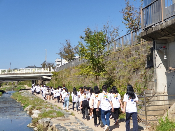 참석자들은 캠페인 옷을 입고 개인별 물을 가지고 걷기 활동을 하며 ‘가볍게, 걷고 마시고 줄이자’ 비만 예방 표어를 홍보했다.