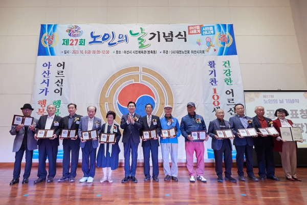 특히 평소 사회와 이웃에 봉사하는 모범적인 생활로 노인의 올바른 위상을 정립하고 노인복지에 이바지한 공로를 인정받은 51명에게 아산시장을 비롯한 기관·단체장 표창을 수여했다.