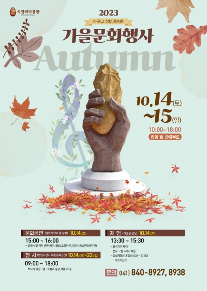 조병철 문화재과장은 “석장리박물관은 가을철 가족과 함께 찾는 공주시의 대표적 장소로 다양한 프로그램 구석기 유적지로서의 위상을 더욱 강화할 것”이라고 말했다.