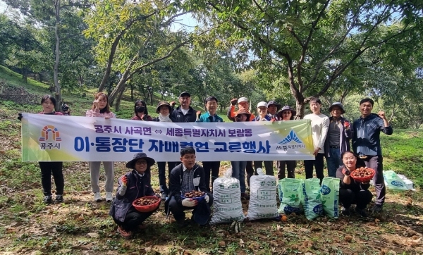 지난 10일 자매결연도시인 세종특별자치시 보람동통장협의회와 사곡면 밤농가를 방문해 합동 봉사활동 진행했다.(사진=공주시)