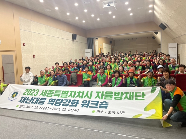 11~12일 이틀간 충북 보은에서 자율방재단세종시연합회(회장 양길수) 소속 자율방재단원 120여 명이 참석한 가운데 역량 강화를 위한 워크숍을 열었다.(사진=세종시)