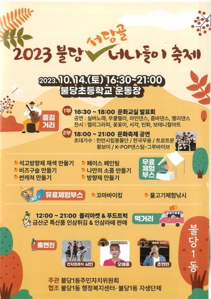 불당1동, 14일‘2023 불당 서당골 너나들이 마을축제’개최