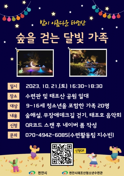 천안시태조산청소년수련관, 숲을 걷는 달빛 가족 모집