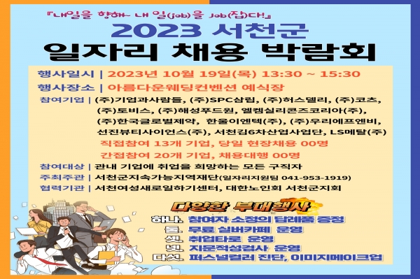 [Ytv영상스토리] 서천군지속가능지역재단이 오는 19일 오후 1시 30분부터 2시간 동안 아름다운웨딩컨벤션에서 ‘2023 서천군 일자리 채용박람회’를 개최한다.