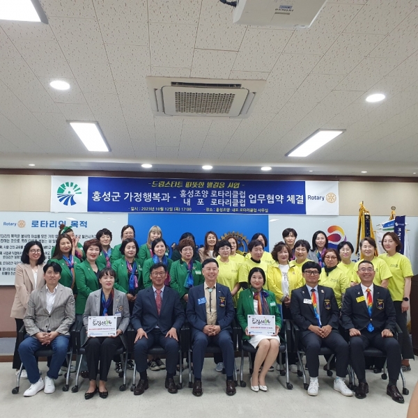 이날 협약식에는 박성래 가정행복과장, 국제로타리 3620지구 박홍전 총재, 국제로타리 3620지구 이천우 홍성청양지역대표, 홍성조양로타리클럽 회원, 내포로타리클럽 회원, 아동드림보호팀이 참석했다.