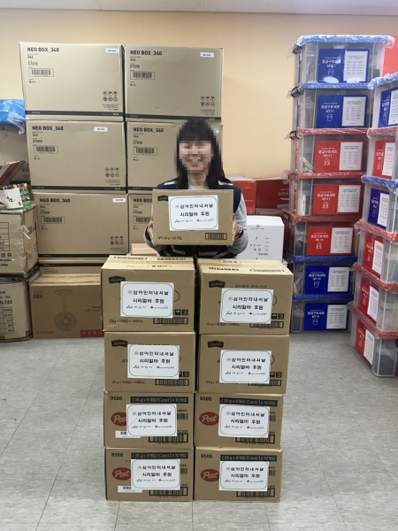 ㈜삼아인터내셔날, 아산시 취약계층에 1100만원 상당 시리얼바 후원