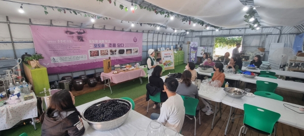 [Ytv영상스토리] 청양군이 지난 17일 남양면에 있는 포도공주농원에서 군내 학교급식 관계자를 대상으로 안전한 지역농산물을 활용한 식생활 교육을 진행했다.