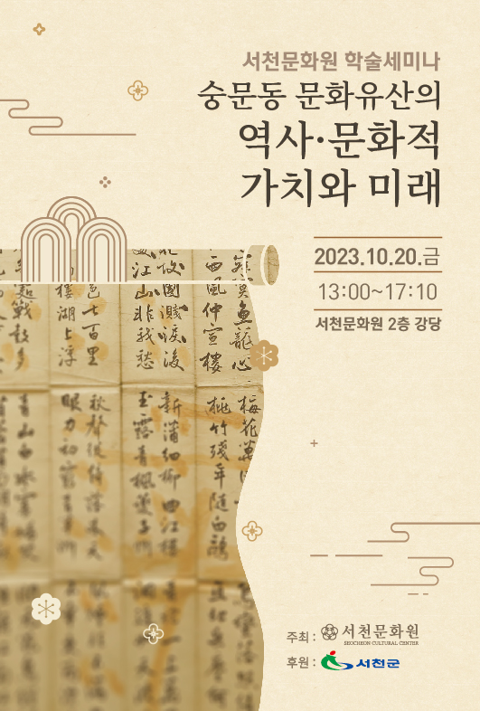 서천문화원이 주최하고 서천군이 후원하는 본 학술 세미나는 오는 20일 오후 1시 서천문화원 2층 강당에서 ‘숭문동 문화유산의 역사·문화적 가치와 미래’라는 주제로 열릴 예정이다.