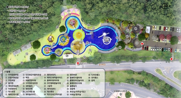 물놀이시설은 옥마산의 옥구슬을 모티브로해 아이들이 자유롭게 뛰놀며 다양한 상상을 펼칠 수 있는 복합 놀이공간이자 커뮤니티 공간으로 조성할 방침이다.