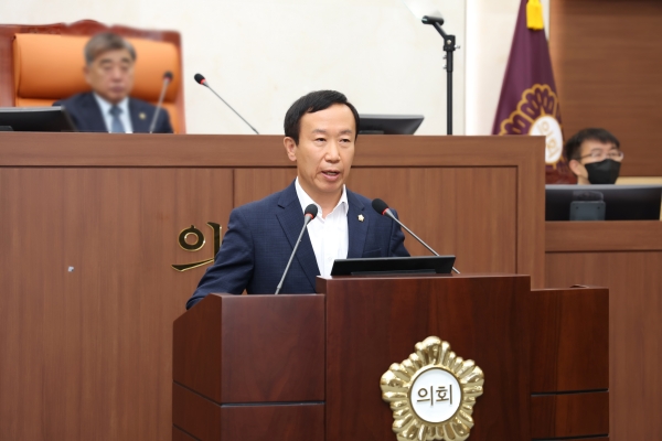 마지막으로 외부재원 의존율이 높은 우리군은 올해 420억원, 내년도엔 325억원 정도의 교부세가 줄어 긴축재정 편성을 하지 않을 수 없는 상황이라며 미래를 위한 SOC투자, 복지예산 등의 기조는 현행과 같이 지속유지됨이 바람직하며 경상지출 분야에서 대대적 긴축 예산을 편성할 것과 지방채발행에만 의존하지 말고 가용 재원을 총동원하는 적극적인 재원 확보방안 수립을 촉구하며 군정질문을 마무리했다.