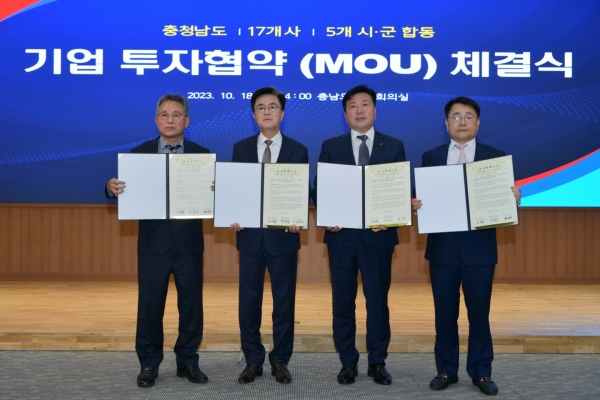 이번 협약은 최재구 군수와 김태흠 충남도지사, 백광산업㈜, 에스디코리아㈜ 대표이사를 비롯한 5개 시군 17개 기업이 참여한 가운데 합동으로 진행됐다.