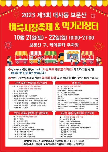 올해로 3회를 맞이하는 대사동 보문산 벼룩시장 축제는 대전 시민의 추억을 간직하고 대전의 상징으로 오랜 사랑을 받아온 보문산의 옛 명성을 되찾고 보문산 관광을 활성화하기 위해 대사동축제추진위원회, 보문산상인번영회, 대사동보문산개발추진위원회 등 지역 마을공동체와 주민이 함께 준비했다.