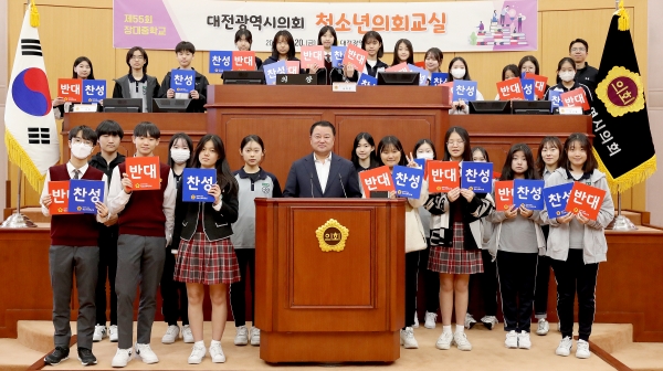 20일 장대중학교 학생들을 대상으로 2023년 하반기 네 번째 청소년의회교실을 개최했다.(사진=대전시의회)