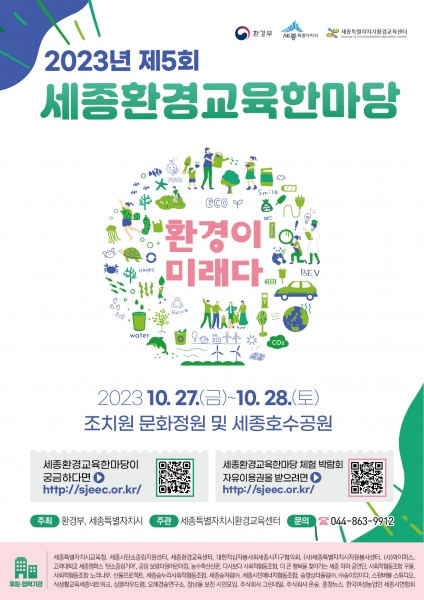 이어 28일 오후 1시부터는 세종호수공원에서 지구인으로 살아남기 자동차 폐가죽 업사이클링 체험-고래의 꿈 환경방탈출 게임 등 32개의 교육·체험 프로그램으로 구성된 환경교육체험박람회가 열린다.