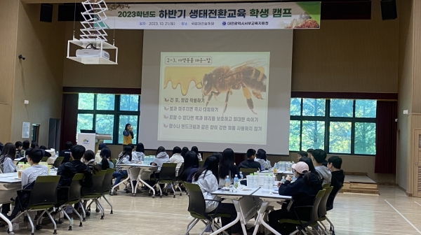서부 관내 중학생 50명을 대상으로 국립대전숲체원에서 하반기 생태전환교육 학생캠프를 실시하였다(사진=대전시교육청)