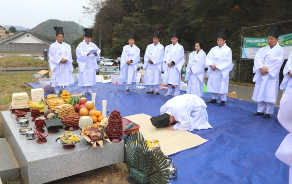 24일 상강(霜降)을 맞아 두마면 입암리 공설봉안당(정명각)에 안치된 무연고 영령의 넋을 기리는 제례행사를 가졌다. (사진=계룡시)