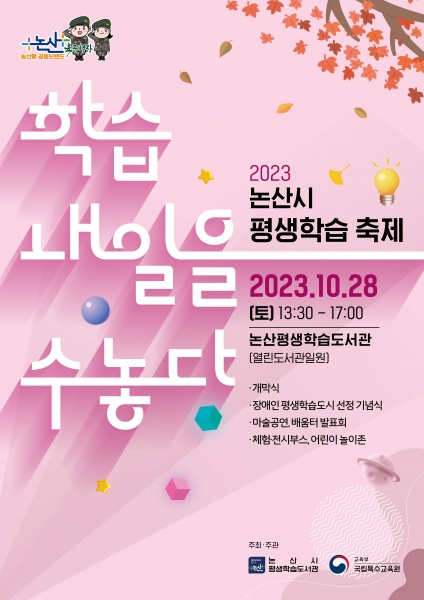 시는 오는 28일 10시에 논산열린도서관 일원에서 ‘2023 논산시 평생학습축제’의 막을 연다고 밝혔다.