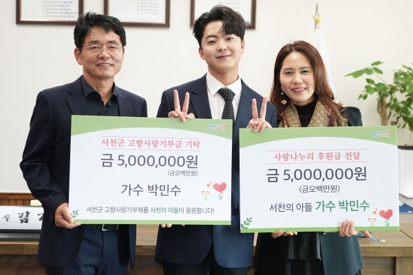 그뿐만 아니라, 어려운 이웃을 위해 써 달라며 사랑나누리 후원금 500만원도 함께 기부함으로써 서천군에 대한 남다른 애정을 보여줬다.