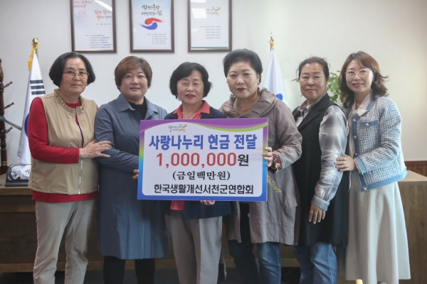 [Ytv영상스토리] 한국생활개선서천군연합회가 어려운 이웃돕기에 써달라고 사랑나누리 이웃돕기 성금 100만원을 서천군청에 기탁했다고 26일 밝혔다.
