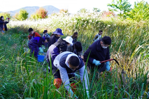 지난 21일부터 22일까지 이틀간 진행된 볼런투어는 지역의 특색을 반영한 봉사활동과 관광을 접목한 프로그램으로 예산군 황새공원 야생복귀연구팀과 협업해 전 세계에 2500마리뿐인 멸종위기 1등급 조류 황새 서식처 보존 활동을 진행했다.