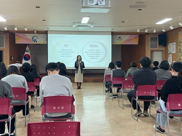 이번 교육은 건전한 성인식 정착과 양성평등한 직장문화를 조성하기 위해 마련됐으며 고이숙 한국양성평등교육진흥원 폭력예방 통합교육 전문강사를 초빙해 ‘세상을 바꾸는 생각 그리고 행동’이라는 주제로 성인지감수성을 기반으로 한 4대폭력에 대한 개념 등을 교육함으로써 공직자로서의 올바른 가치관 함양을 도모했다.