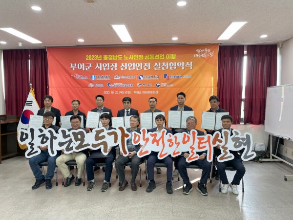 부여군 노사는 중대재해·안전보건 관리체계를 고도화하고 사업장 내 위해위험요인 관리를 위한 산업안전보건위원회 활동 등 안전보건 협력체계를 강화할 뿐만 아니라 안전한 노동환경 구축을 위한 교육과 작업장 개선활동도 적극 추진하기로 했다.
