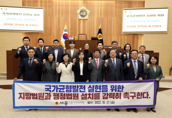 이에 세종시의회는 국회와 정부, 대법원 등 각종 관계기관에 법원 설치를 위한 법령을 개정해 법적 근거를 마련, 세종시민에게 헌법상 보장된 재판받을 권리와 효율적인 행정소송 대응을 위한 법원 설치 방안을 검토, 세종특별자치시가 실질적 행정수도의 위상을 확립할 수 있도록 법원 설치에 적극 협력할 것을 요청했다.