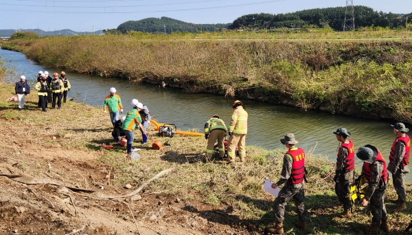 25일에는 태풍경보 발령 후 집중호우로 인한 삭선천 수위 상승에 따른 제방 붕괴와 농경지·주택 침수 및 농민 실종 사고 발생이라는 가상 상황을 설정, 군청 소회의실에서 부군수 주재로 상황판단 회의를 개최했다.