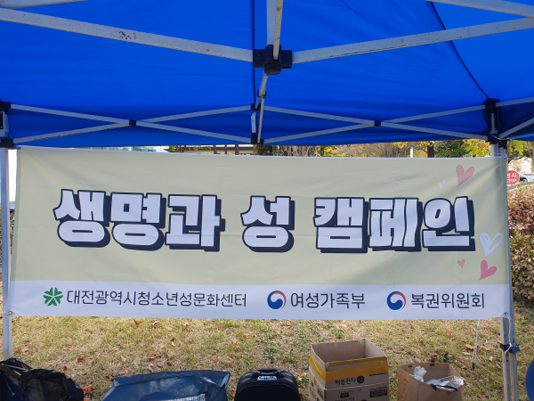 충남대학교에서 ‘생명과 성’ 캠페인을을 진행하고 있다.(사진=대전광역시청소년성문화센터 제공)
