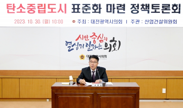30일 대전시의회 소통실에서 ‘탄소중립도시 표준화 마련 정책토론회’를 개최했다.(사진=대전시의회)