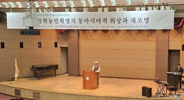‘공주 동학농민혁명의 동아시아적 위상과 재조명’이라는 주제로 열린 이번 한일국제학술토론회는 박맹수 전 원광대 총장과 나카츠카 아키라 나라여자대학 명예교수의 기조 강연에 이어 주제 발표와 종합토론 순으로 진행됐다.