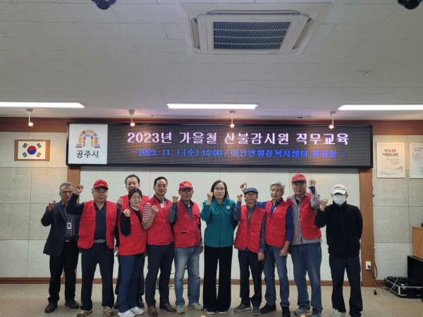 가을철 산불 조심 기간이 시작됨에 따라 산불감시원 직무교육과 산불 조심 깃발 설치 등 선제적 예방 활동에 나섰다(사진=공주시)