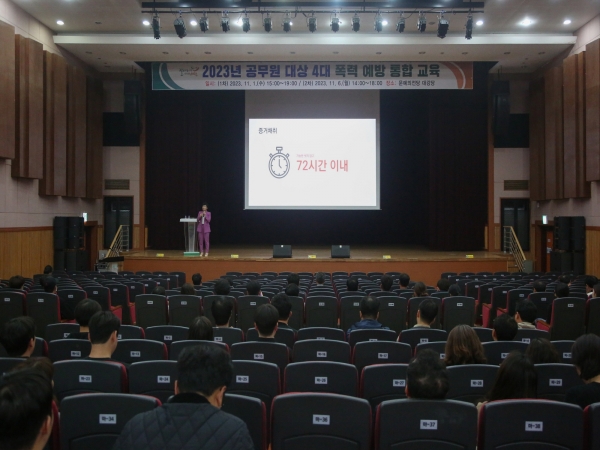 [Ytv영상스토리] 서천군이 지난 1일 문예의전당 대강당에서 6급 이하 공무원, 신규직, 기간제 근로자, 사회복무요원 등 직원 400여명을 대상으로 ‘2023년 1차 공무원 대상 4대 폭력 예방 통합 교육’을 실시했다.