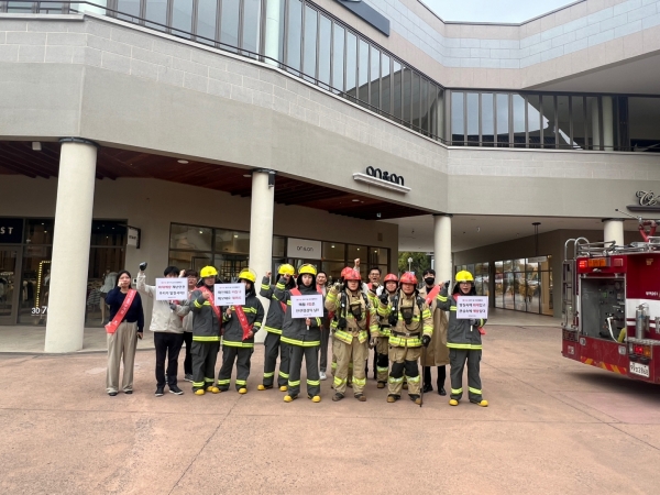 훈련이 끝난 후 롯데아울렛은 군청 관계자 및 소방대원들과 함께 안전 캠페인도 운영했다.