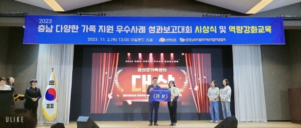 또한, 금산가족센터 소속 강기연 씨가 다문화 프로그램 운영 관련 공로를 인정받아 충남도지사 표창을 수상했다.