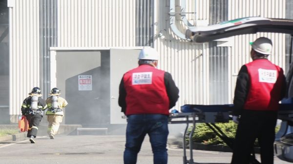 이번 훈련은 한국중부발전 신서천발전본부에서 화재폭발, 유해화학물질 유출 등 복합재난이 발생한 상황을 가정해 실제와 같이 진행됐으며 피해확산 방지를 위한 직원 대피, 환자 이송, 화재진압 등 1차 대응기관 간 협력체계를 중점 점검했다.