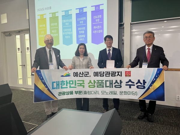 올해 수상은 관광상품부문 예산군 예당관광지를 비롯해 관광축제부문 군산 문화재야행 ESG경영부문 ㈜시몬스 신소비문화 부문 ㈜우아한형제들 전통문화 상품부문 디자인씽킹박물관 등 총 5개 분야에서 이뤄졌다.