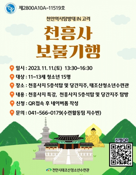 [Ytv영상스토리] 천안시태조산청소년수련관이 청소년인증수련활동 ‘천안역사탐방대 In 고려 천흥사보물기행’ 운영한다고 6일 밝혔다.