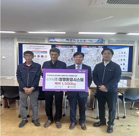 [Ytv영상스토리] 아산시는 지난 3일 ㈜청명환경시스템으로부터 관내 취약계층을 위한 백미 1500kg을 후원받았다고 밝혔다.