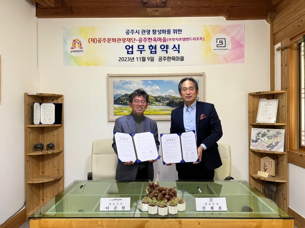또한, 브릿지호텔앤드리조트 진재윤 대표이사는 “공주문화관광재단과 협력을 바탕으로 이루어질 문화관광 프로그램이 기대된다”며 “공주한옥마을을 방문하는 관광객들이 만족하고 돌아가실 수 있게 더욱 노력하겠다”고 전했다.