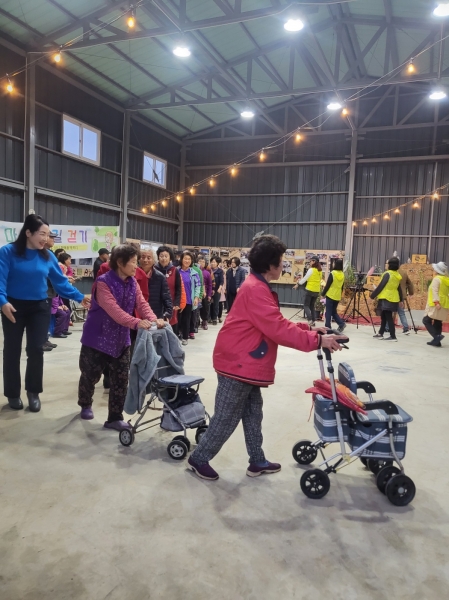 어르신들은 걷기 지도자의 안전한 보행 교육을 받은 후 걷기를 포기하지 않고 보행기나 지팡이를 짚고 마을 안길 1.5km를 걸었다.