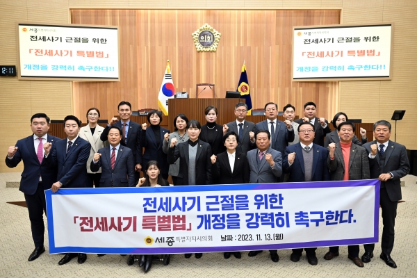 한편 세종시의회는 ‘전세사기 근절을 위한 전세사기 특별법 개정 촉구 결의안’을 국회의장과 국무총리, 국토교통부장관, 행정중심복합도시건설청, 경찰청 등에 이송할 예정이다.