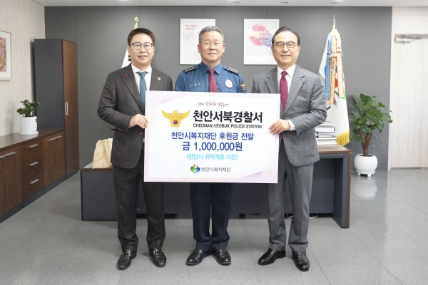 김장호 서장은 “천안시민이 화합하고 함께 즐기는 대회의 우승 상금인 만큼 천안시 취약계층을 위해 소중히 사용되길 바라는 마음에 천안시복지재단에 기부하게 됐다”고 밝혔다.