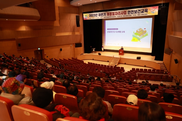 15일 계룡문화예술의전당 대공연장에서 공공근로, 중장년층, 신중년경력형 등 재정지원일자리사업 참여자와 사업별 안전관리자 등 260여 명을 대상으로 보건안전교육을 실시했다(사진=계룡시)