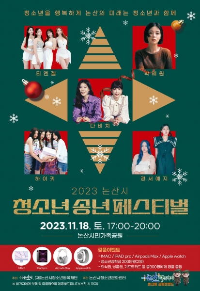 논산시청소년행복재단 청소년문화센터가 오는 18일 오후 5시 논산시민가족공원에서 ‘2023 논산시 청소년 송년페스티벌’을 개최한다고 전했다.