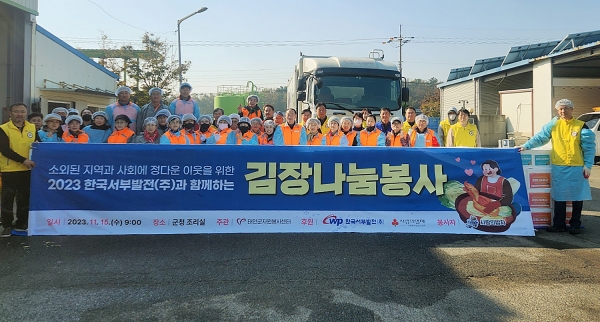 태안군에 따르면, 센터는 지난 15일 군청사 내 ‘사랑의 밥차’ 조리실에서 한국서부발전, ‘사랑의 밥차’, 원북면 자원봉사단, 태안발전본부 건설관리실 관계자 등 62명이 참여한 가운데 김치 담그기 행사를 마련했다.