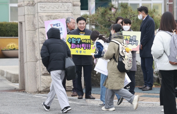 한편 계룡시는 수험생들이 불편함 없이 시험을 치를 수 있도록 시험장 주변 차량 진출입 관리, 주정차 및 노점상 단속, 긴급 수송차량 지원 및 사전 소방안전 점검 실시 등 수험생 종합대책을 마련·시행했다.