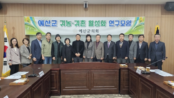 군의회는 16일 의회 문화강좌실에서 ‘예산군 귀농·귀촌 활성화를 위한 연구 모임’ 2차 회의 및 연구용역 중간 보고회를 개최했다고 밝혔다.